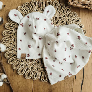 Możesz ją zestawić z legginsami w tym samym wzorze lub z jednobarwnymi w wybranym kolorze. Do kompletu poleca się również czapka i komin a dla małej damy opaski w kilku modelach. Sprawdź całą kolekcję w piękny wzór różyczek.