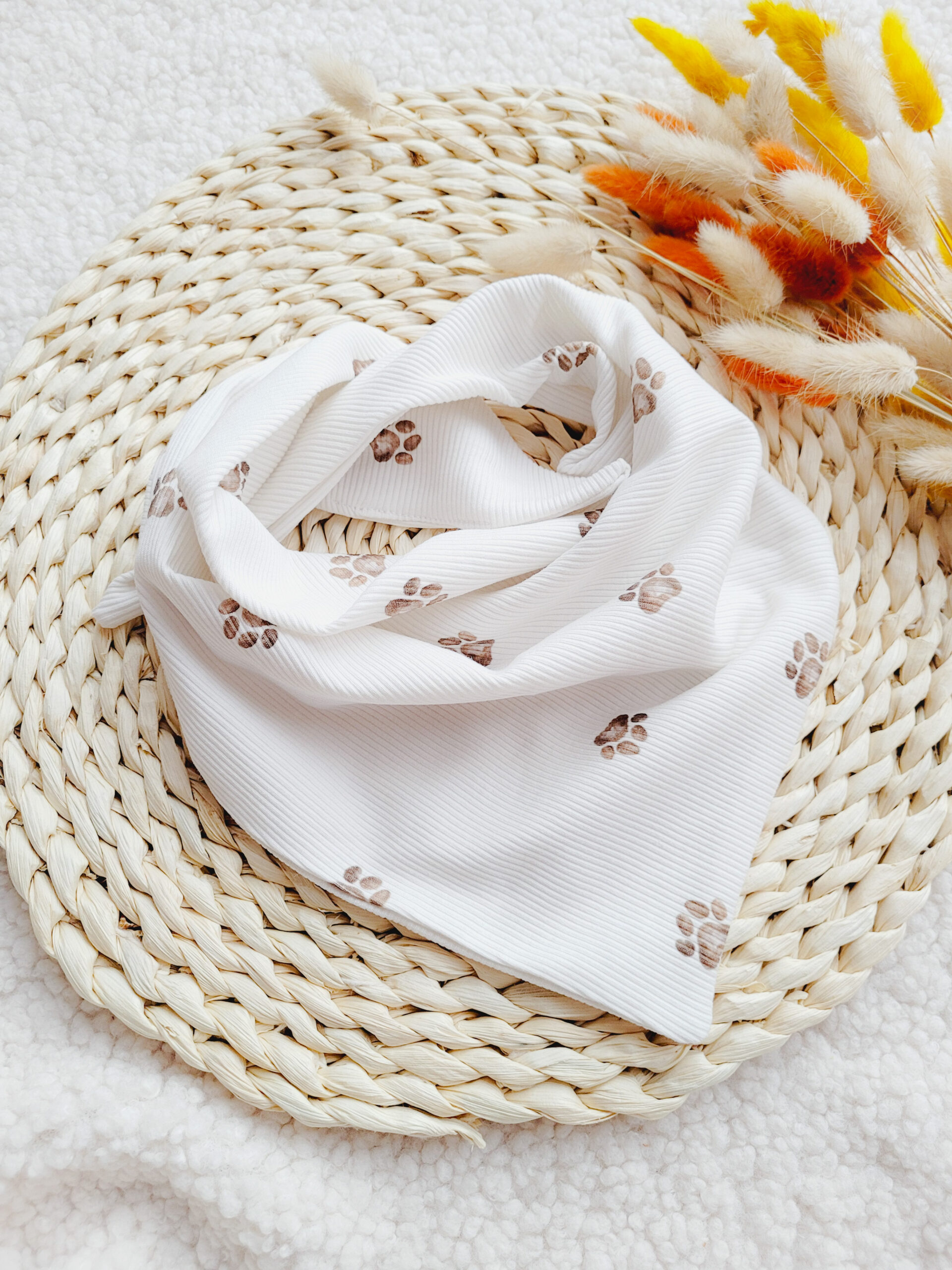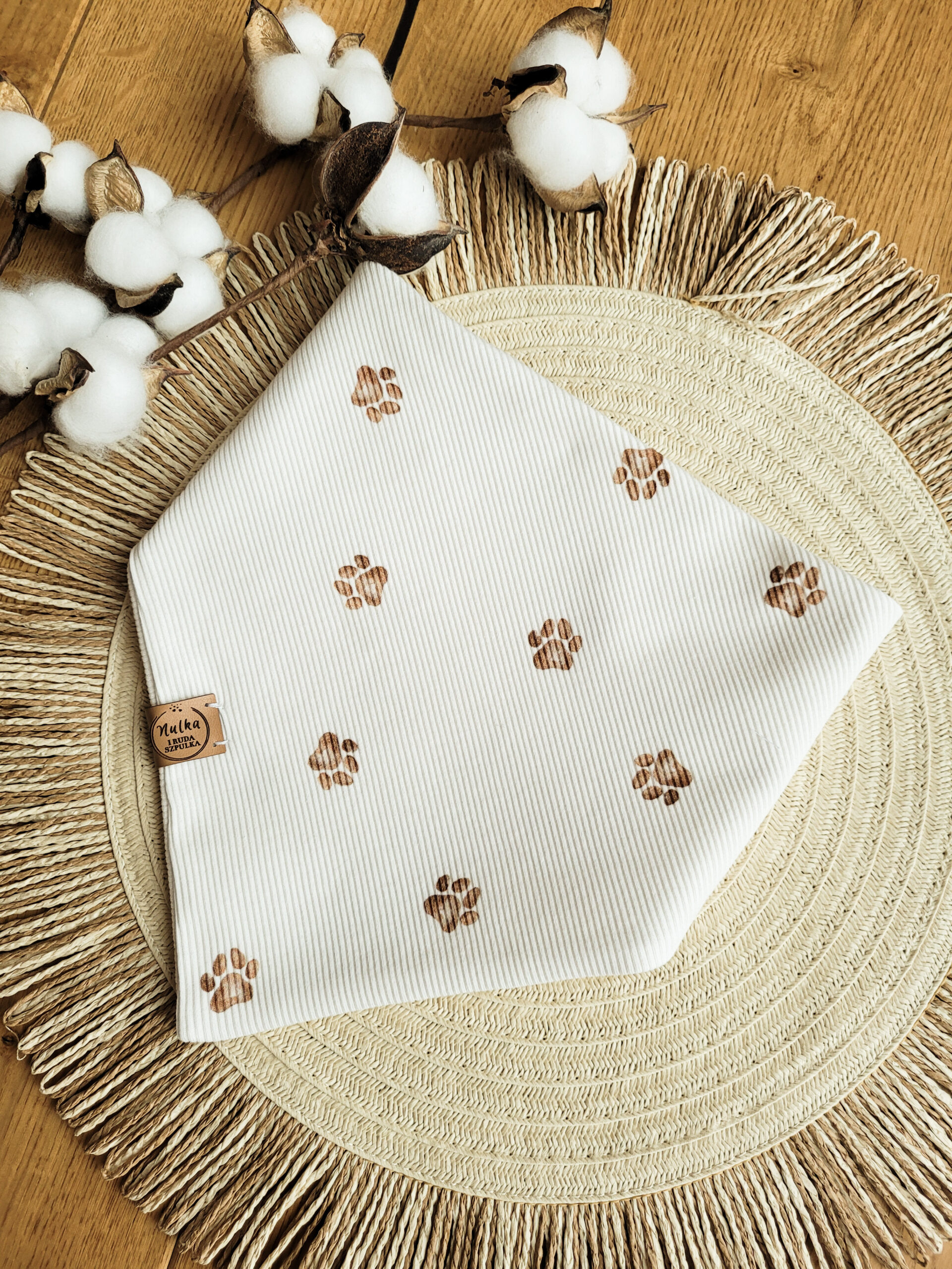 Chusta pod szyję dla chłopca lub dziewczynki wzór psich łapek, prążkowana.