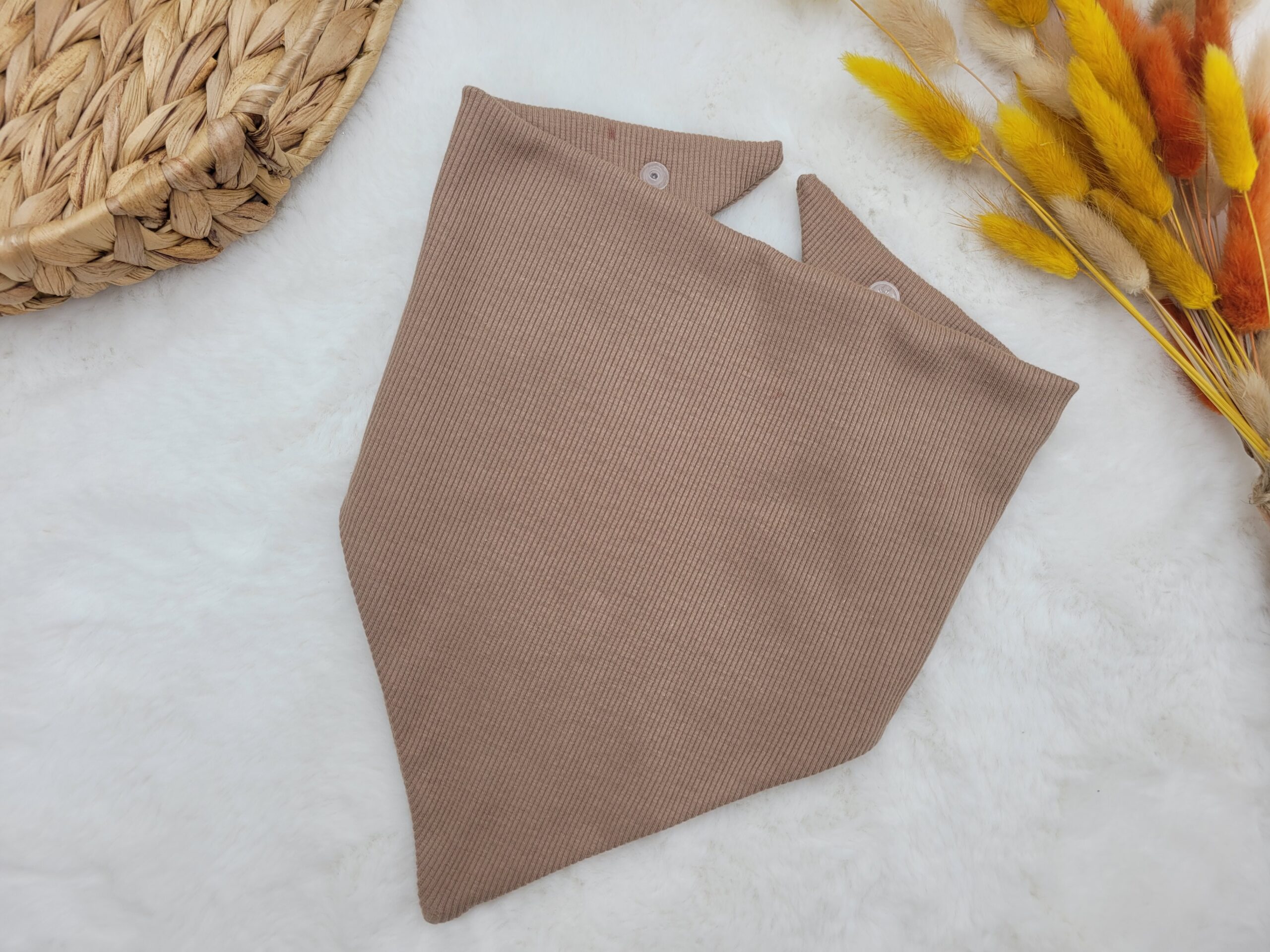 Chusta pod szyję wiązana lub zapinana na napki w wybranym kolorze.