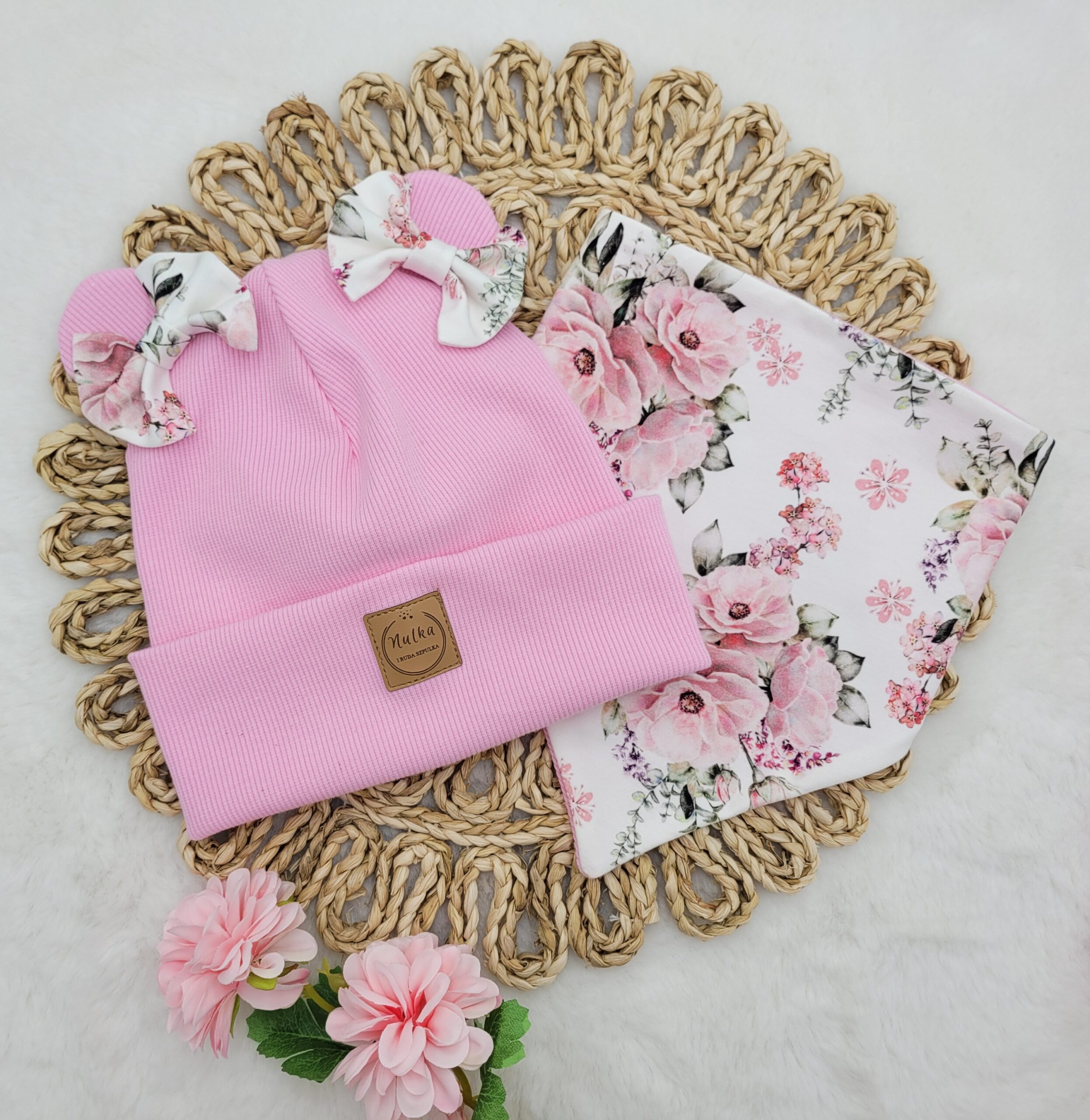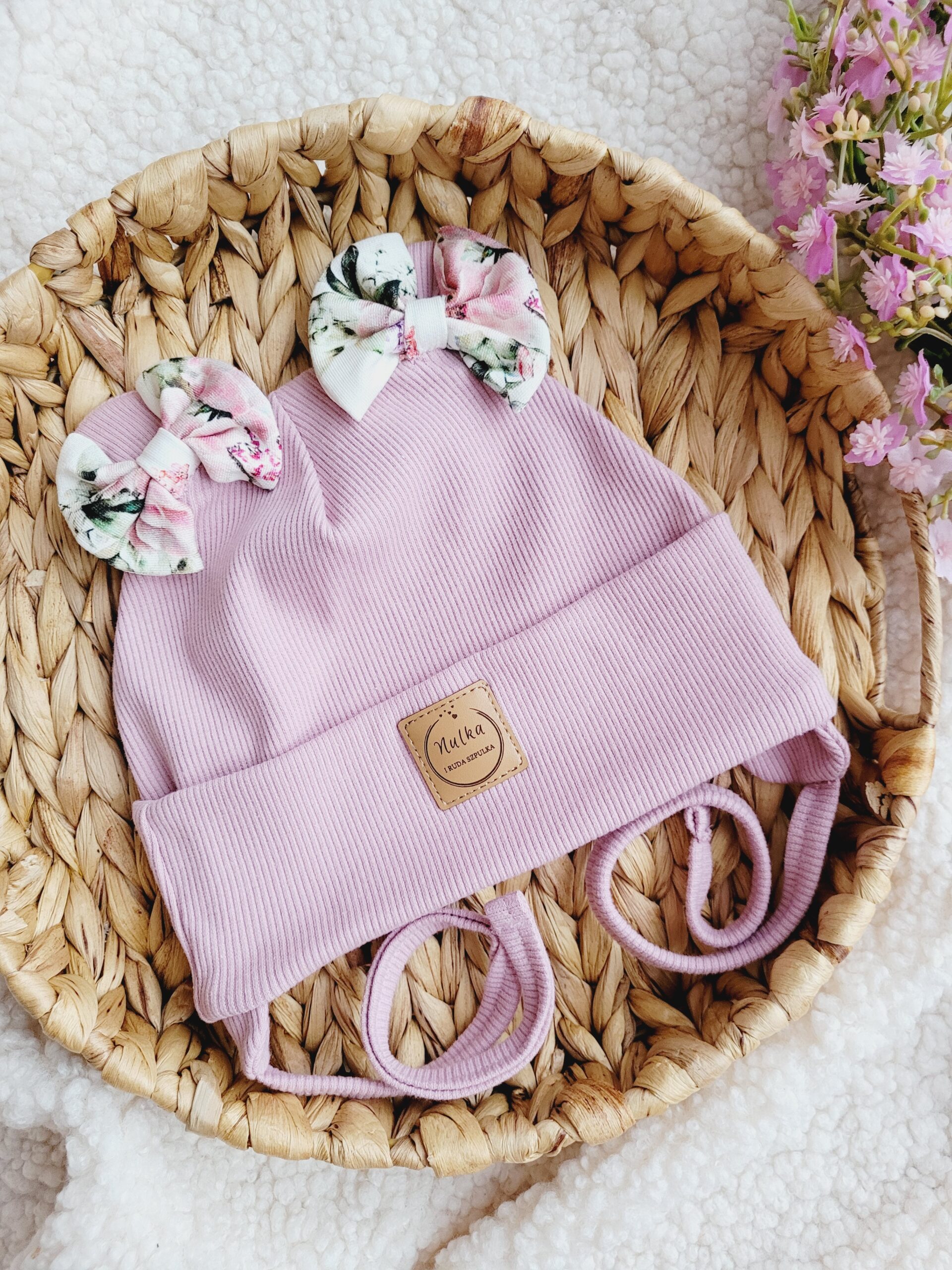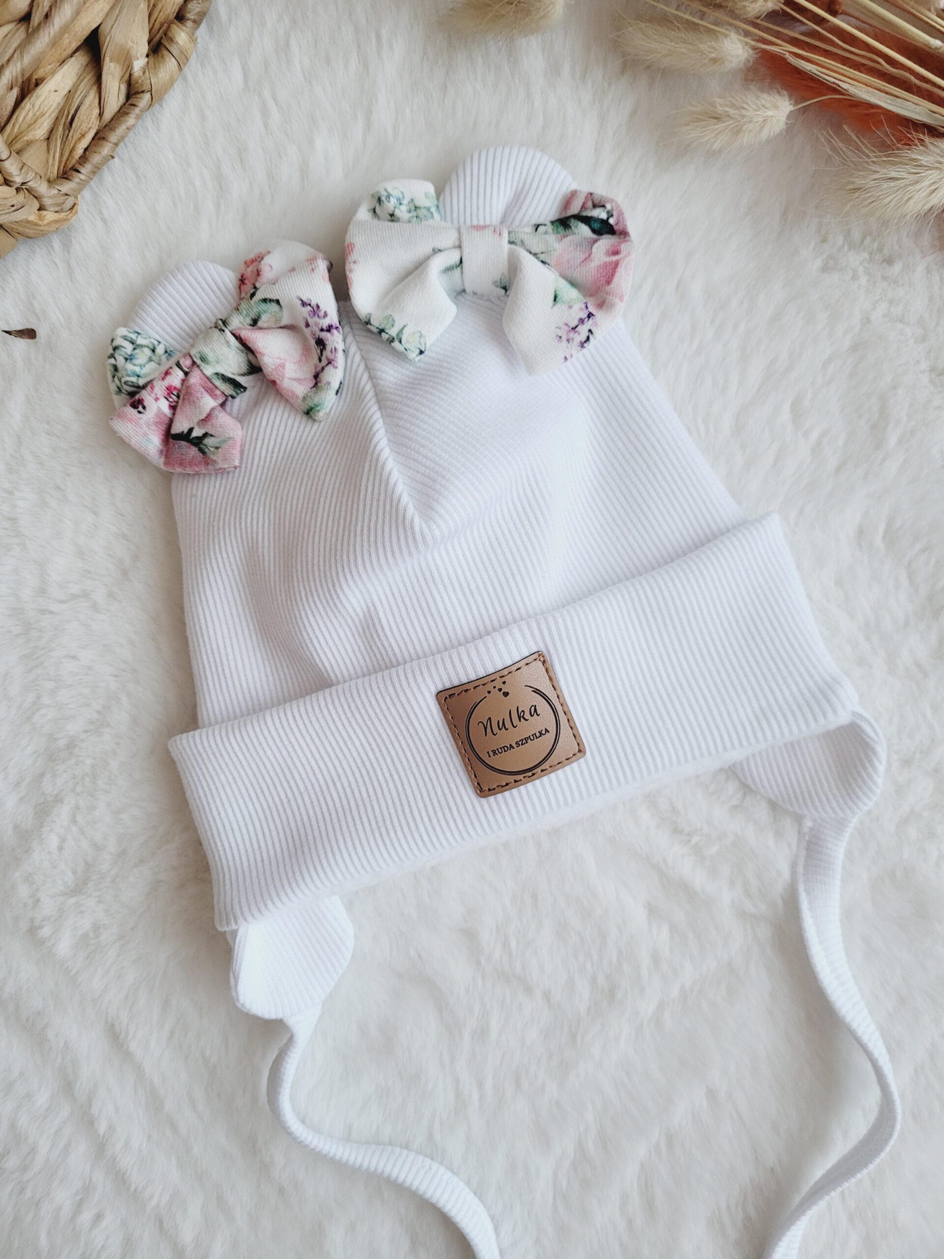 A to jeszcze nie wszystko! Specjalnie dla Ciebie możemy ozdobić czapkę pięknymi dodatkami. Jeśli szukasz czegoś jeszcze bardziej funkcjonalnego, wybierz wiązanie z nausznikami lub dodaj śliczne perełki (różowe dla czapki białej i ecru, pozostałe kolory perłowe) na wywinięciu co sprawi, że będzie jeszcze piękniejsza!