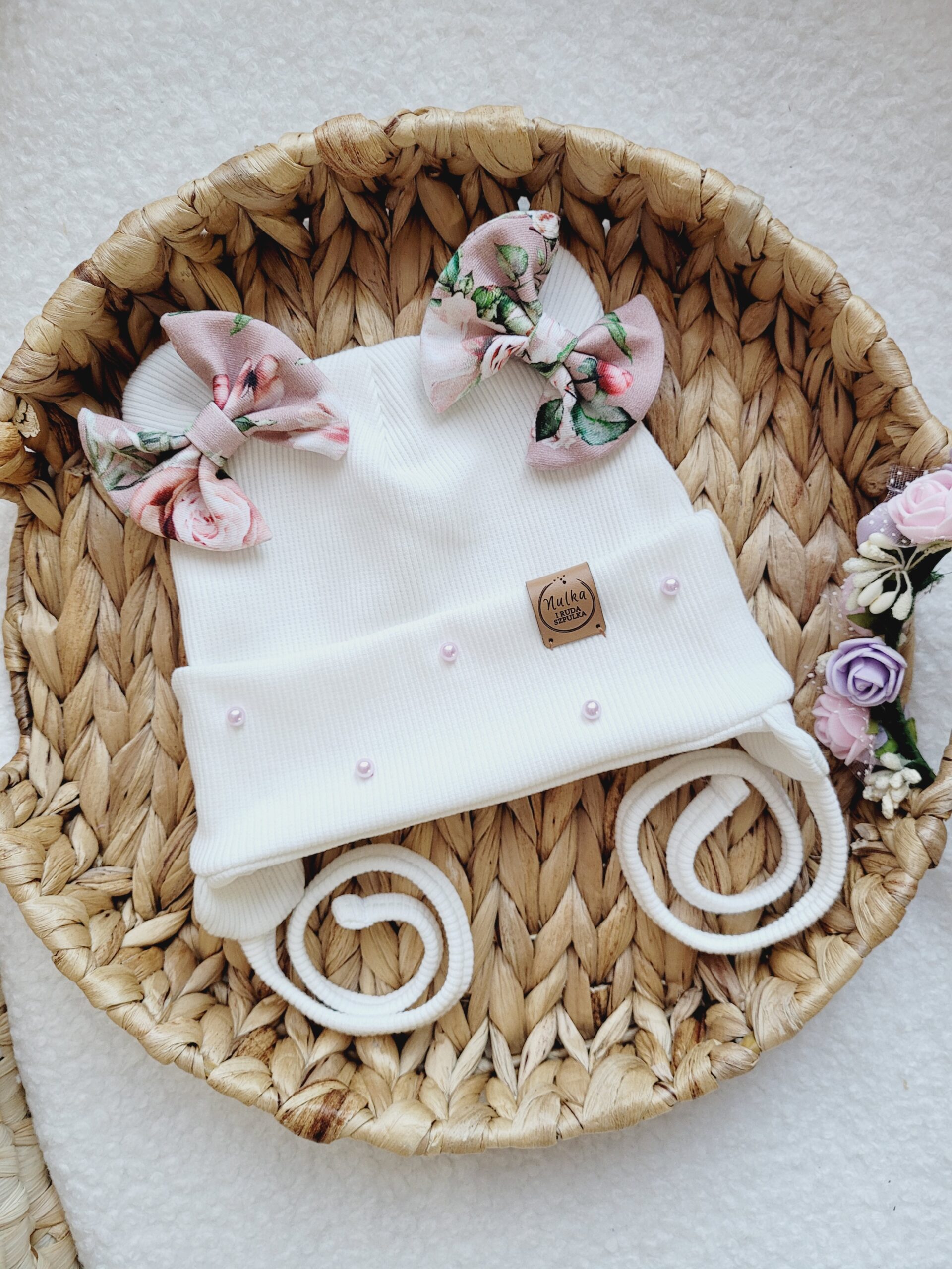Czapka z uszkami i kokardkami dla dziewczynki Malowane Róże