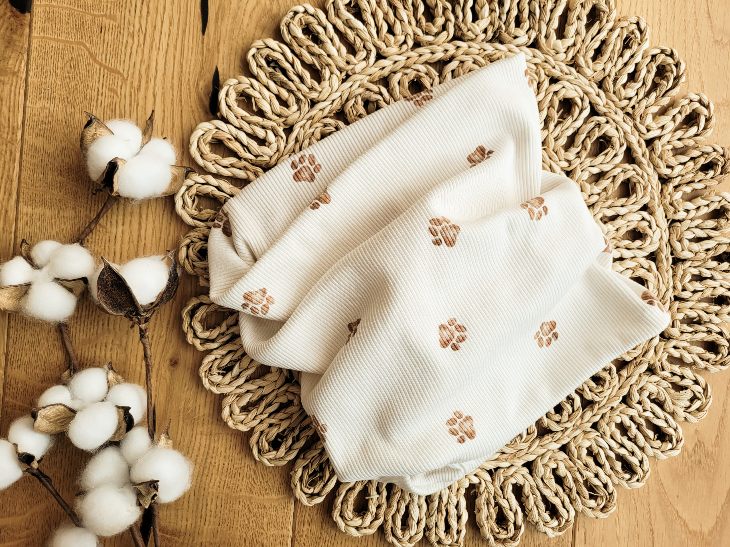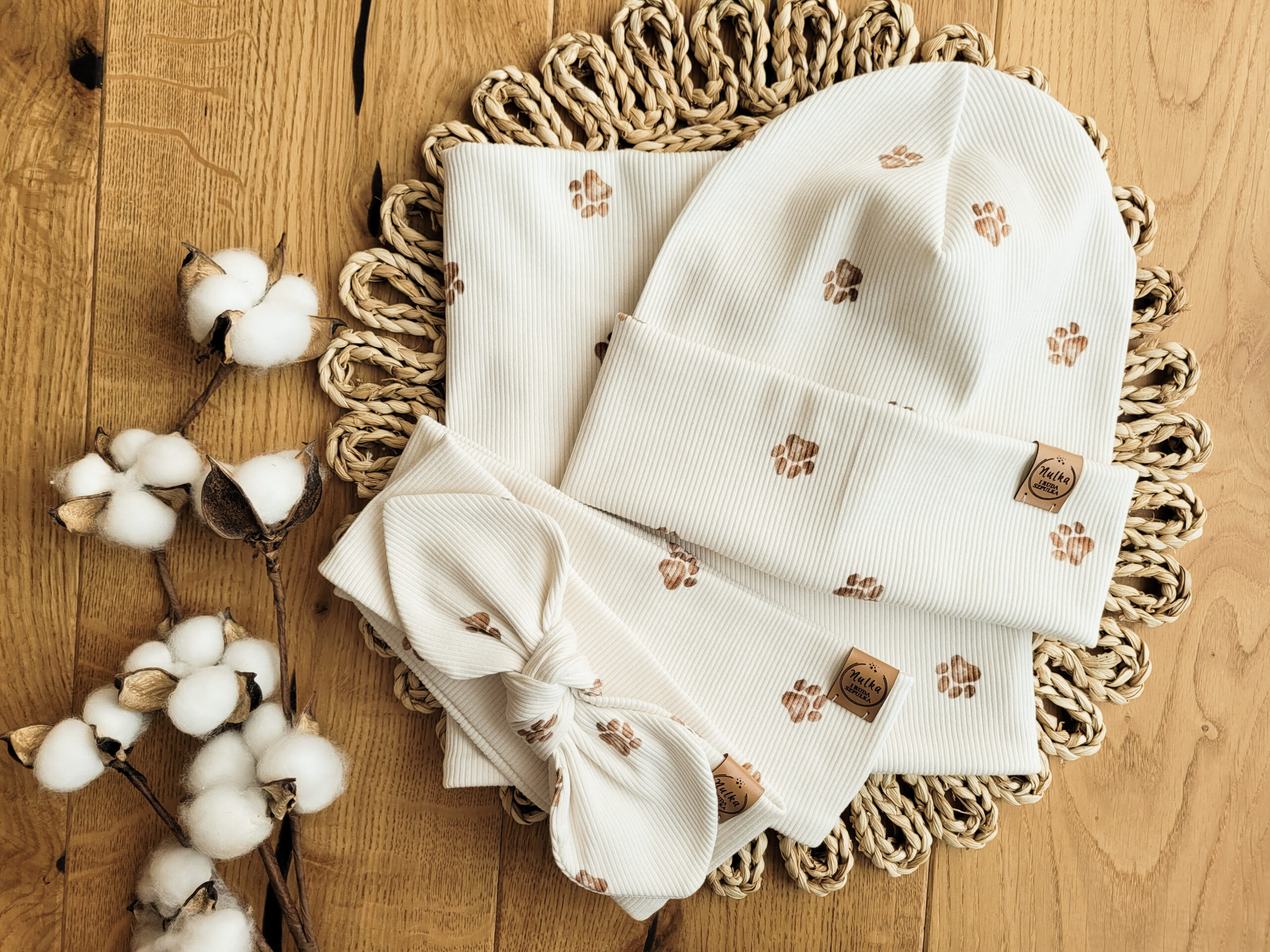 Komplet dziecięcy z dzianiny prążkowanej premium w łapki.