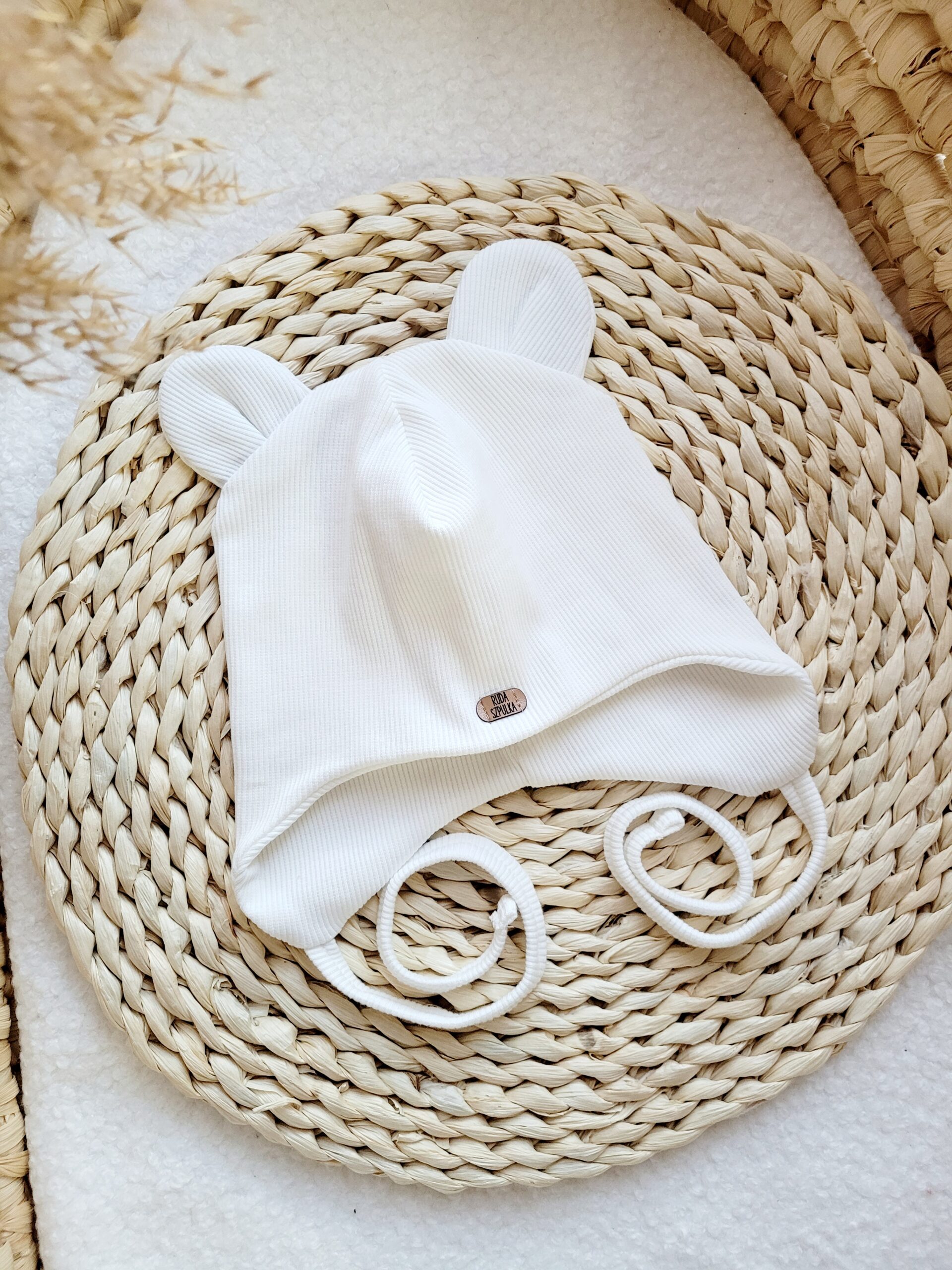 Wiązana czapka dziecięca z uszkami misia