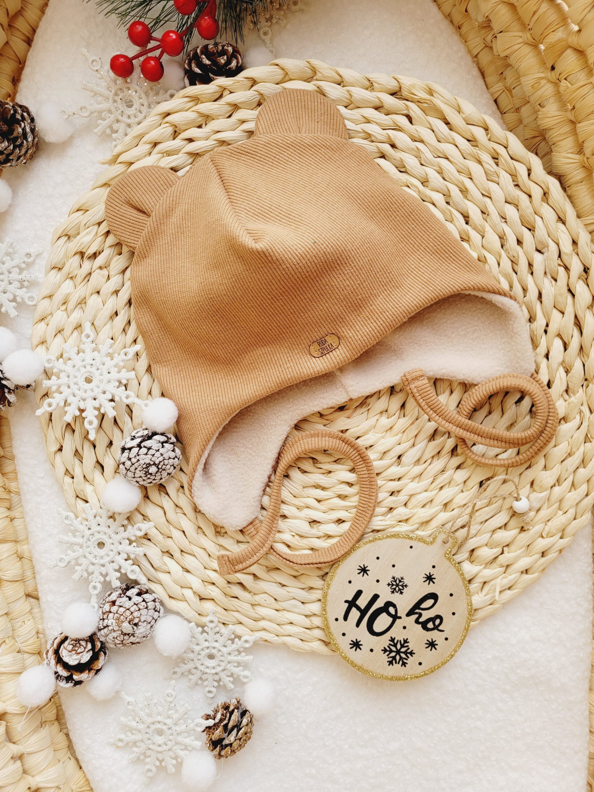 Misiowe uszka nadają czapce wyjątkowego uroku i sprawiają, że przyciąga uwagę. Każdy model ozdabiamy również logo Nulka i Ruda Szpulka, co podkreśla jej unikalny charakter.