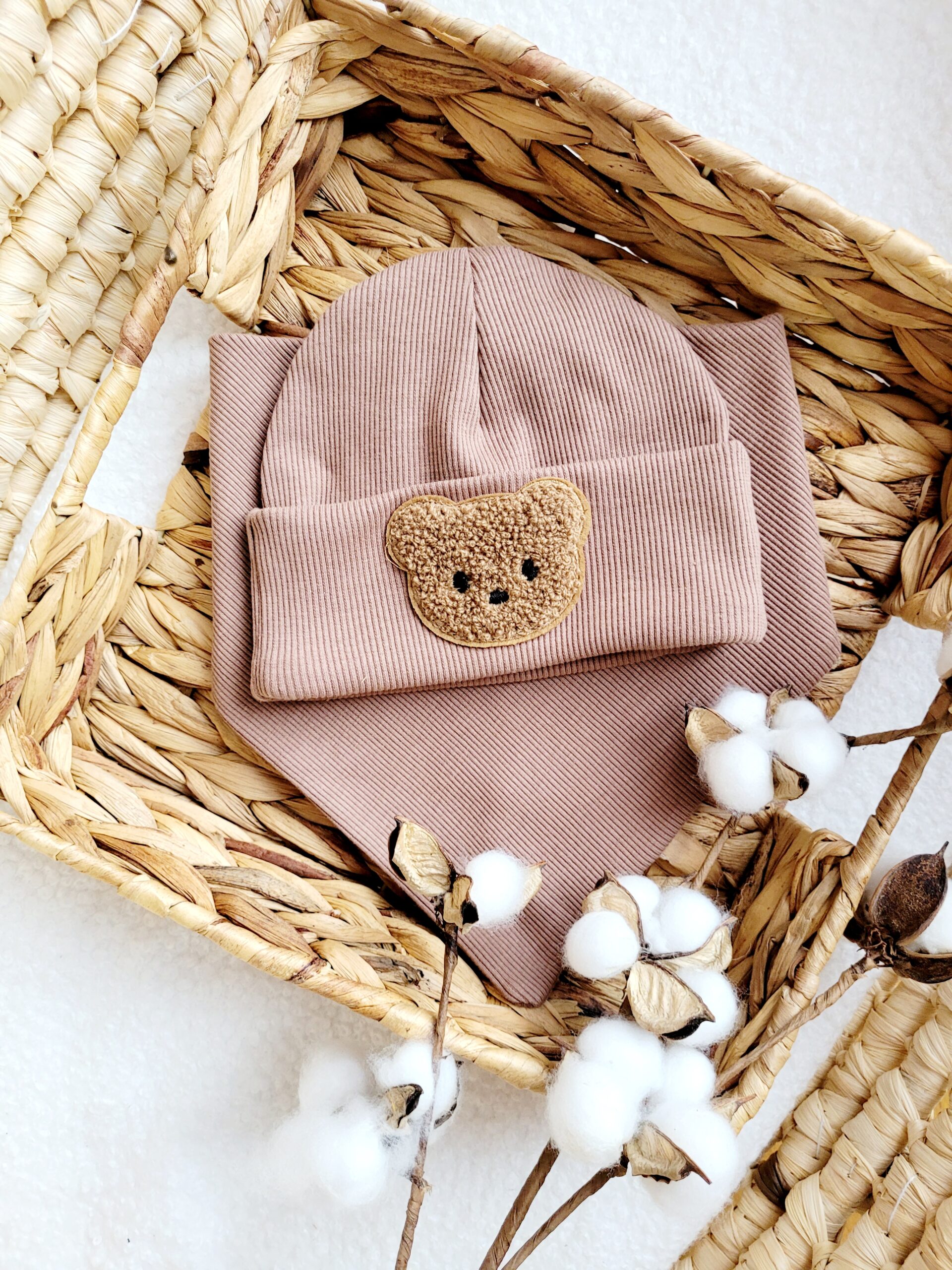 Możesz wybrać czapkę w dowolnym kolorze, dzięki czemu łatwo dopasujesz ją do garderoby dziecka. Naszywka z misiem dodaje całości wyjątkowego, dziecięcego uroku, a jednocześnie sprawia, że czapka wyróżnia się na tle innych modeli.