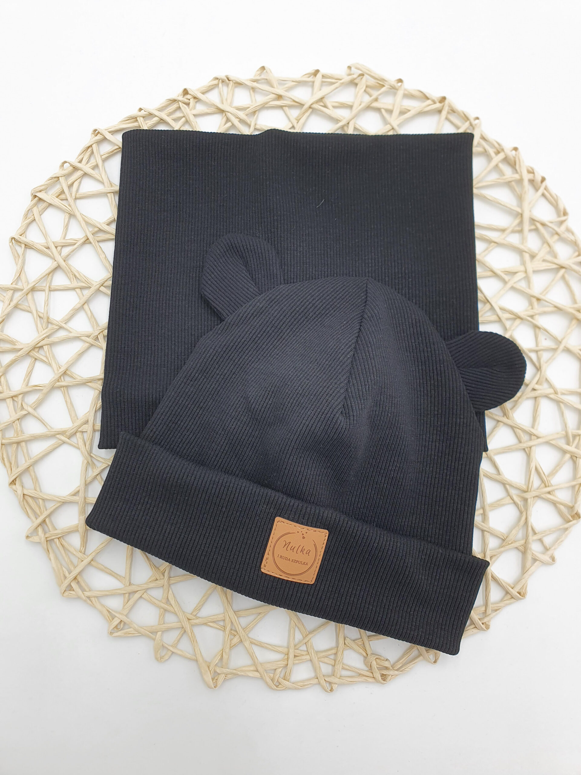 Czapka wykonana z dzianiny prążkowanej w klasycznym czarnym kolorze. Dzianina prążkowana jest niezwykle elastyczna dzięki czemu ładnie dopasowuje się do głowy i rośnie razem z dzieckiem. Specjalnie dla Ciebie ozdobimy ją super misiowymi uszami, Ty tylko wybierz czy chcesz czapkę prostą czy wywiniętą. Misiowe uszy sprawiają, że jest ona inna niż wszystkie.