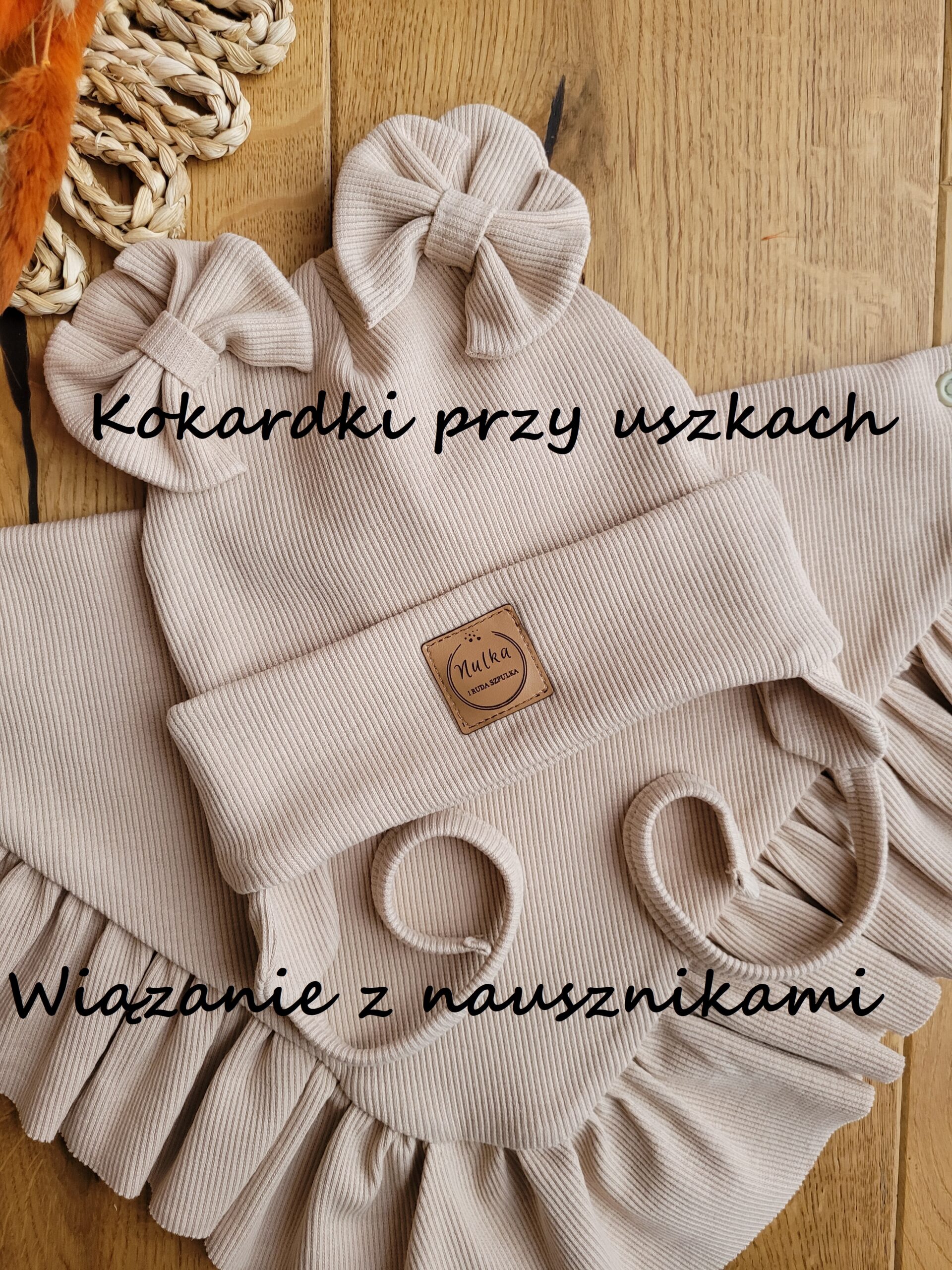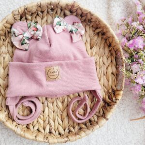 Jeśli chcesz czapka może mieć dodatkowo wiązane troczki z nausznikami a także dwie kokardki w tym samym kolorze co czapka doszyte przy uszkach. Jeśli wolisz inny kolor kokardek zostaw wiadomość w uwagach na końcu zamówienia.