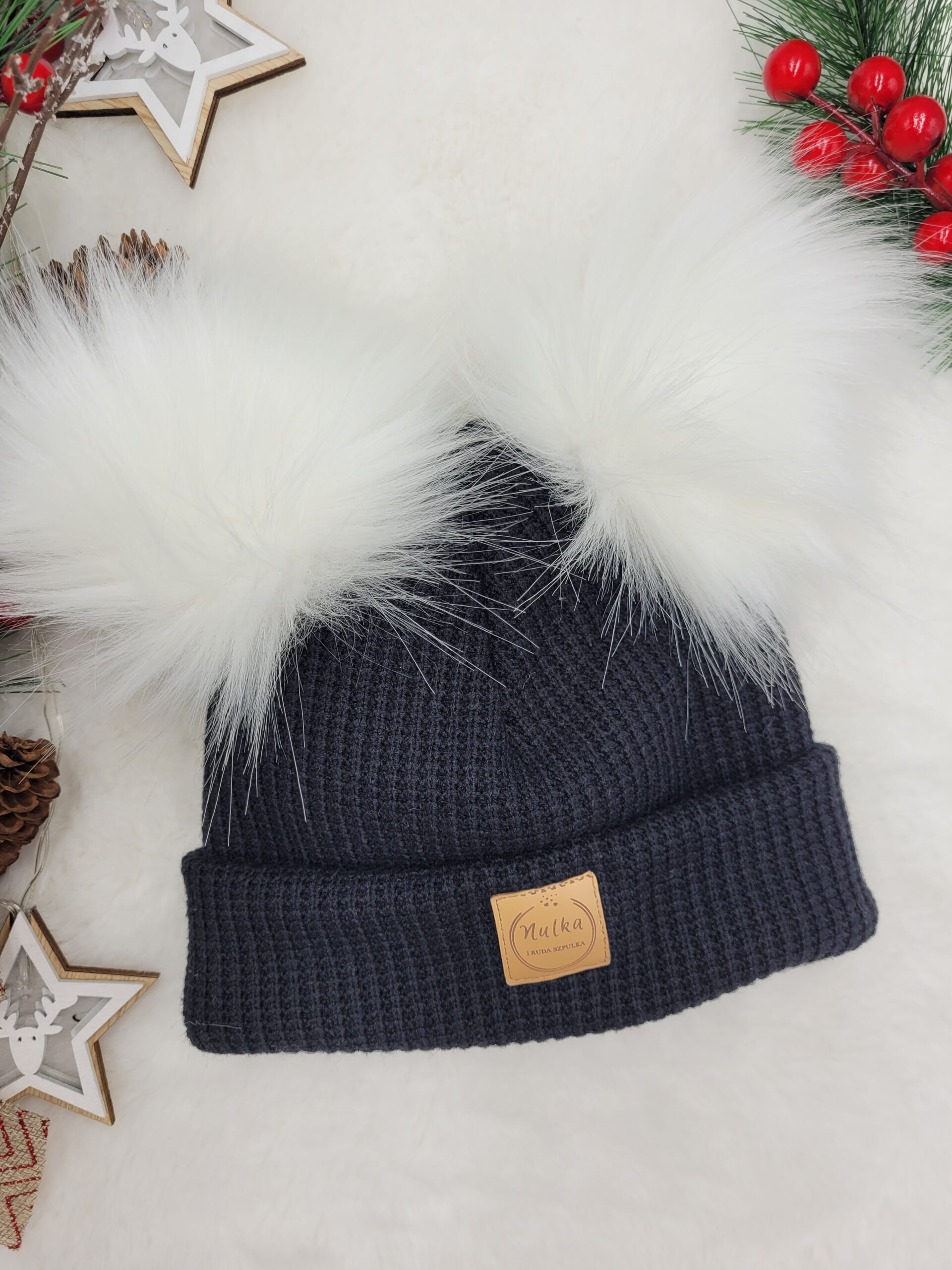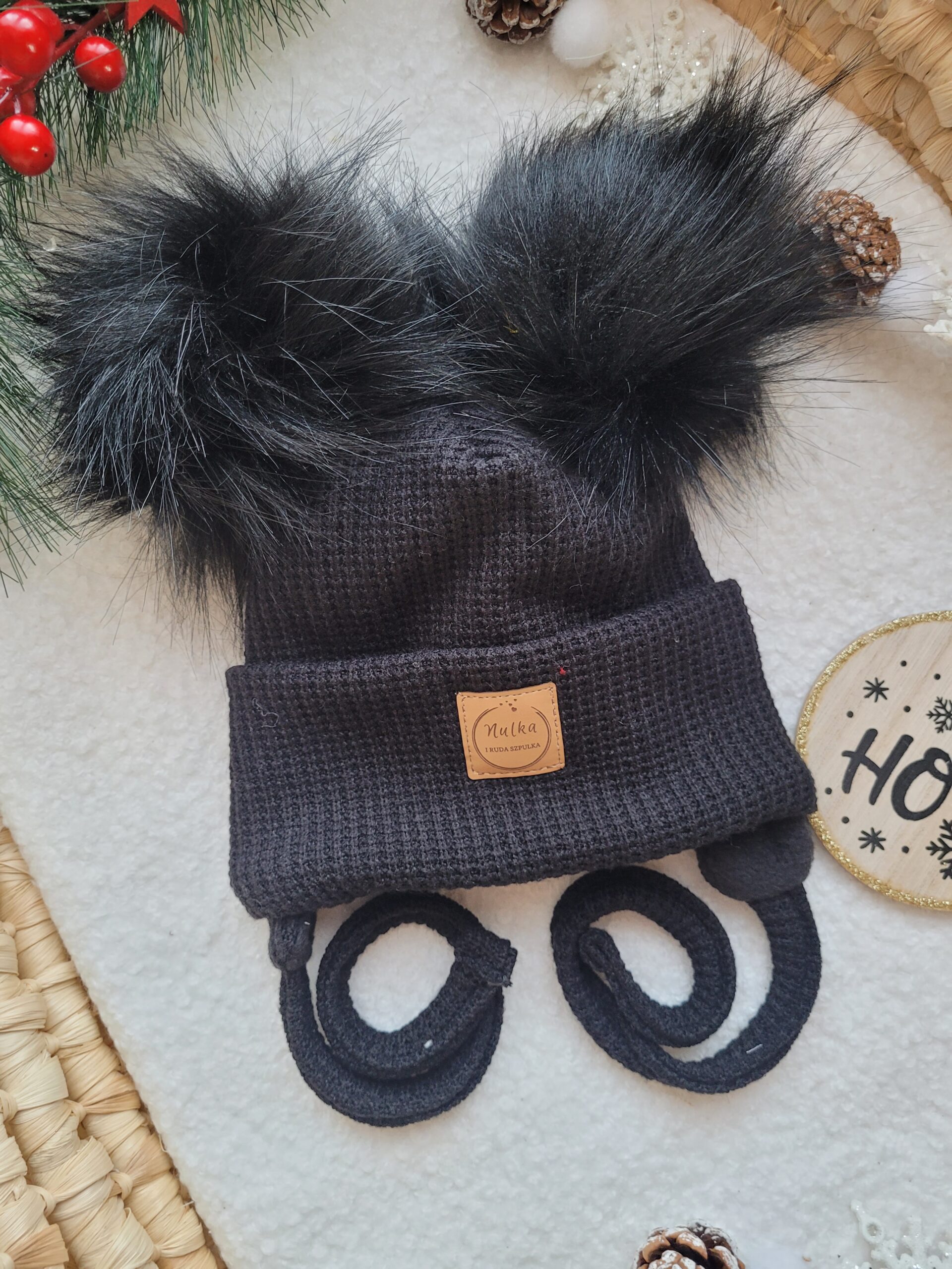 Czapka wykonana jest z wysokiej jakości, podwójnej dzianiny sweterkowej, która jest miękka i nie podrażnia skóry. Zapewnia komfort nawet podczas długiego noszenia, a czarny odcień dodaje jej uniwersalności, sprawdzając się zarówno dla dzieci, jak i dorosłych. - Możliwość personalizacji z pomponami
