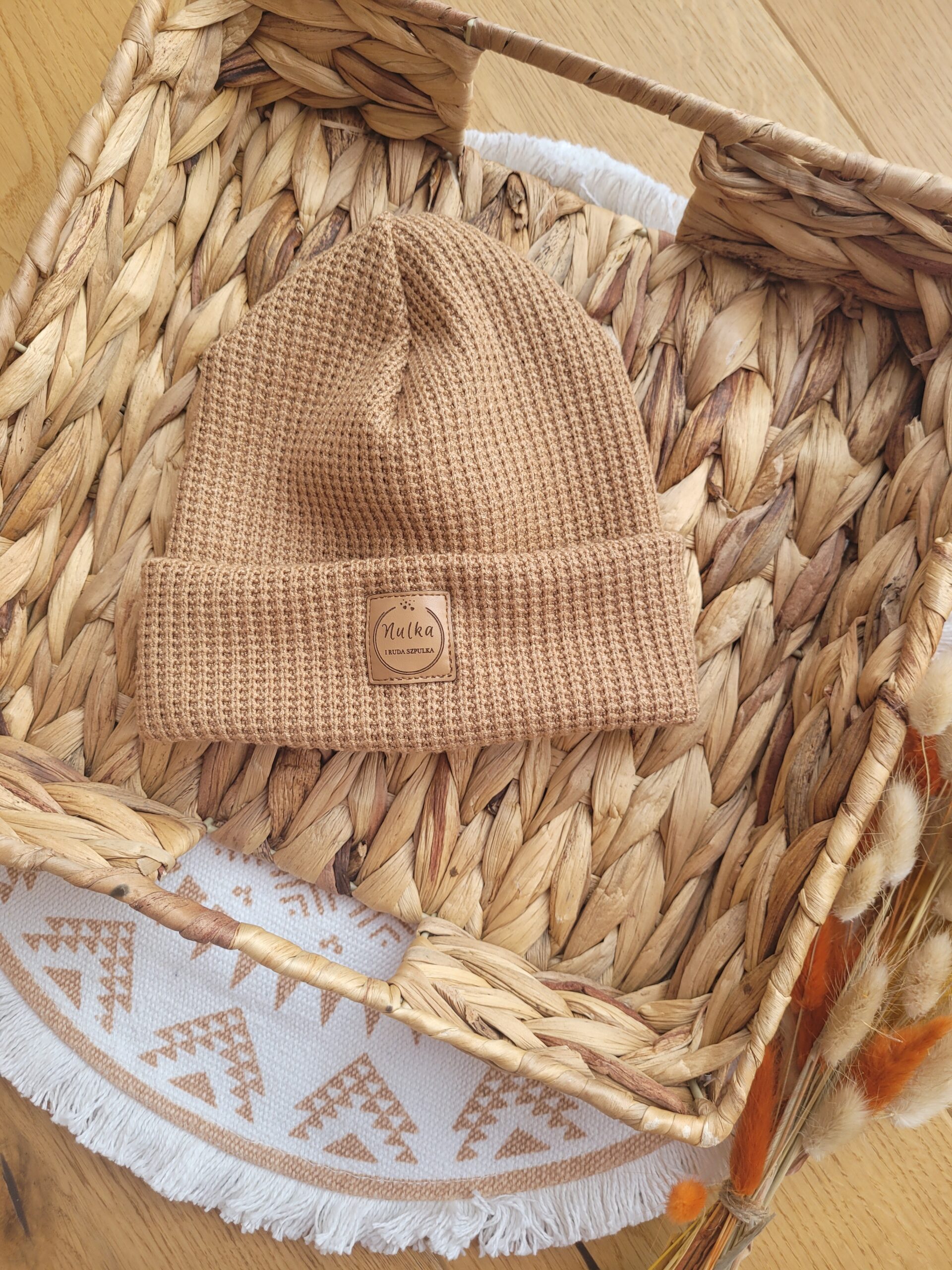 Klasyczny krój beanie czyni tę czapkę ponadczasową. Czapka dostępna jest w rozmiarach dla niemowląt, dzieci i dorosłych, dzięki czemu cała rodzina może cieszyć się ciepłem i stylowym wyglądem. Kolor karmelowy pasuje zarówno do codziennych, jak i bardziej eleganckich stylizacji.