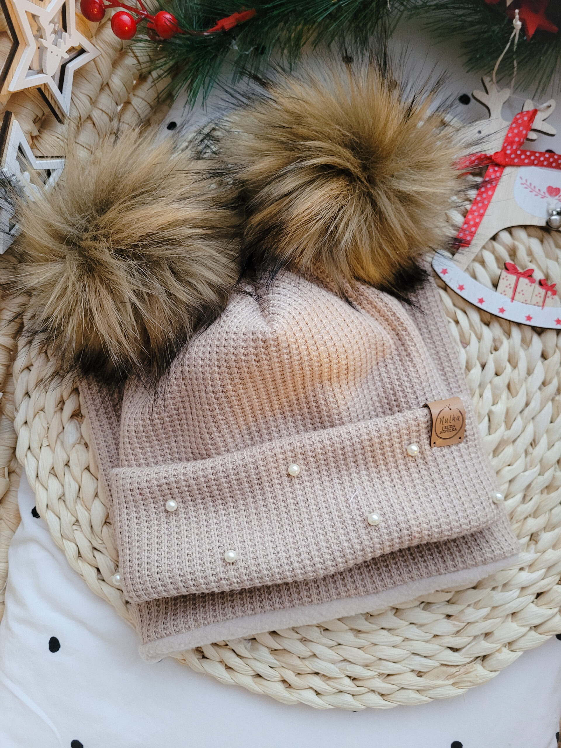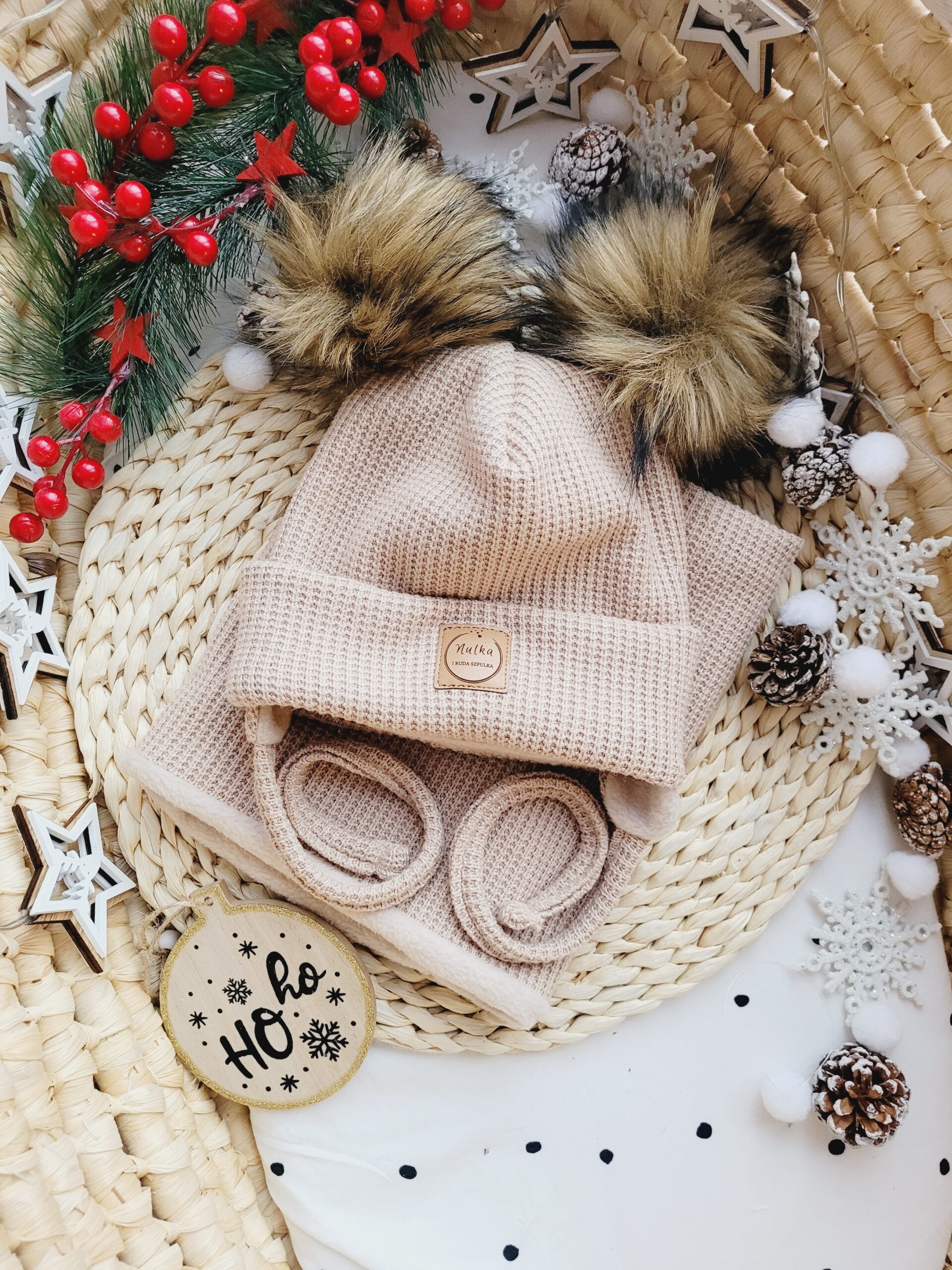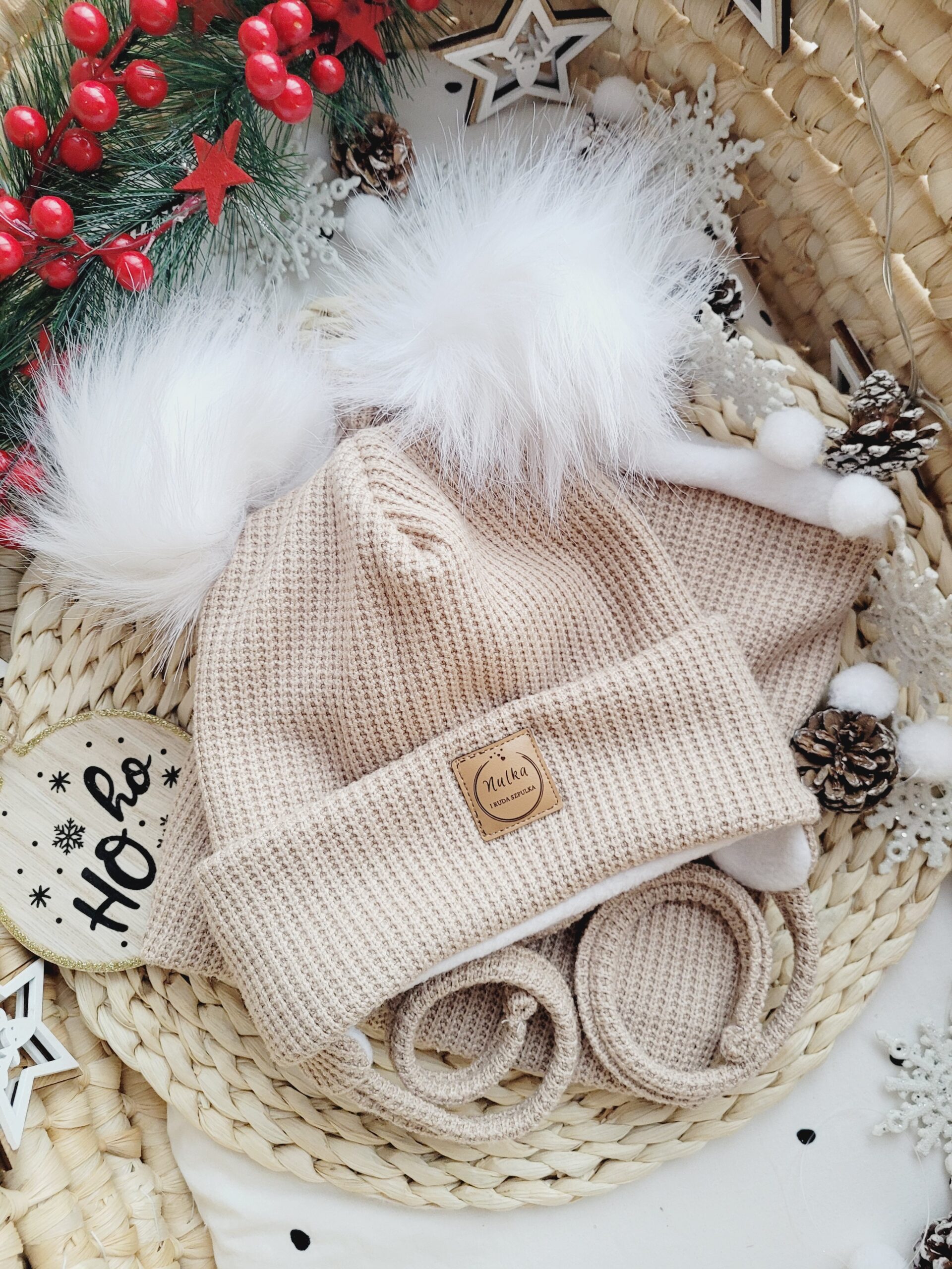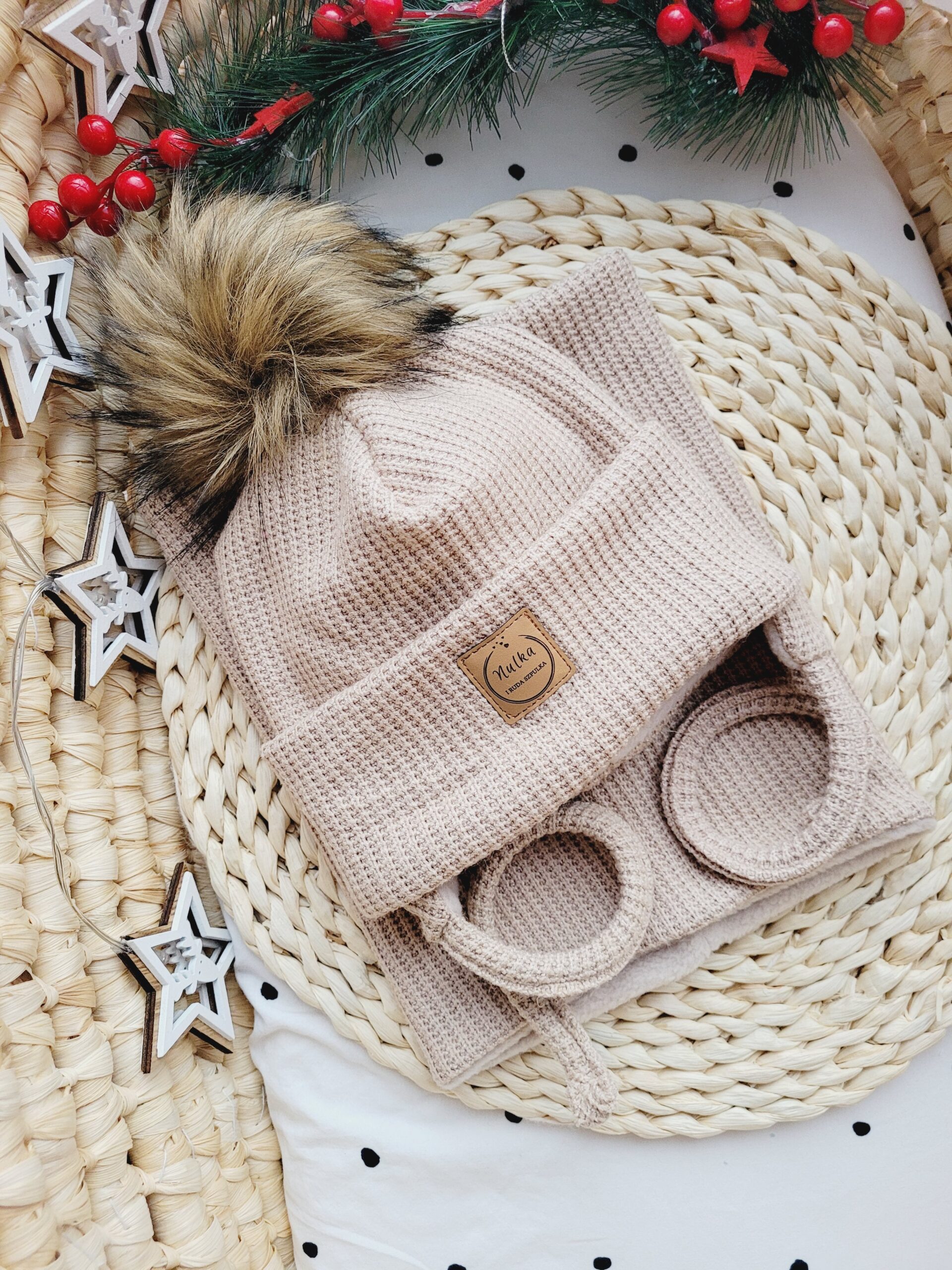• czapki z tej samej dzianiny,