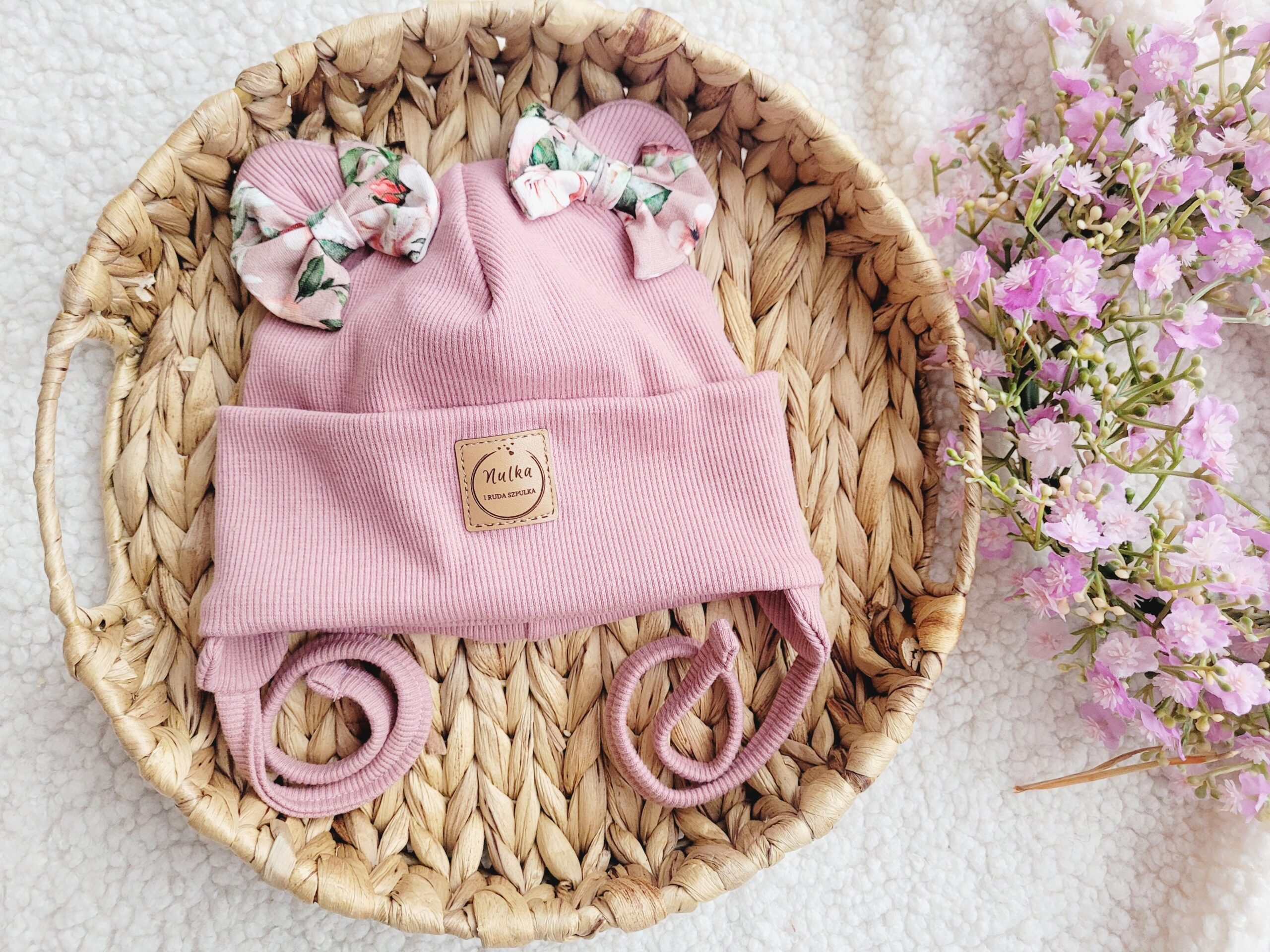 Czapka ozdobiona misiowymi uszkami z dwoma małymi kokardkami wzór Malowane róże, które dodają uroku i sprawiają, że czapka wygląda mega dziewczęco. Czapka może być klasyczna lub z wiązana z nausznikami.