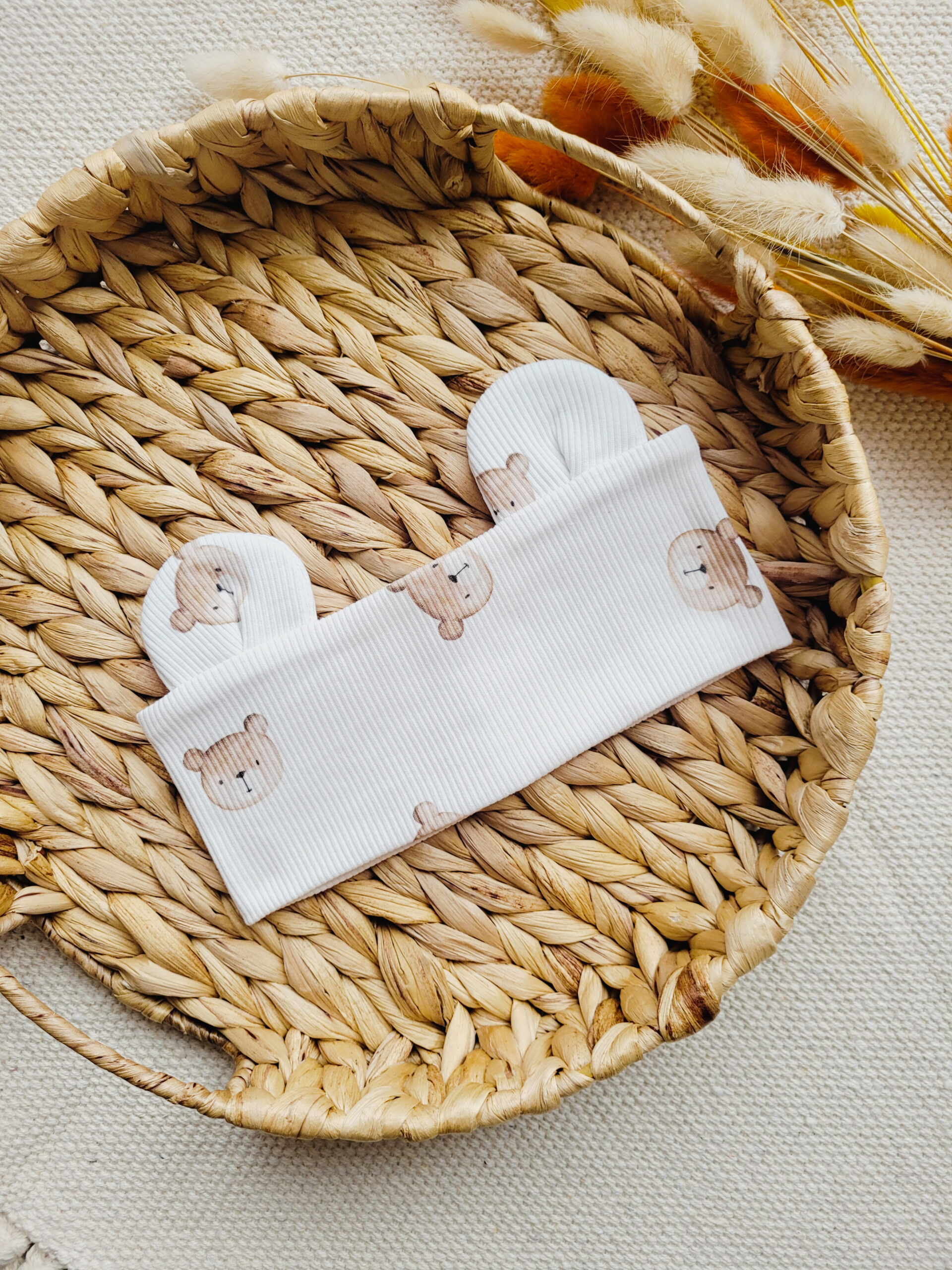 Nasza opaska prążkowana doskonale komponuje się z innymi prążkowanymi akcesoriami i ubraniami. Wybierz opaskę z uszkami misiowymi i wzorem misiów, aby stworzyć harmonijny zestaw, który z pewnością przypadnie do gustu Twojemu chłopcu. Z dzianiny prążkowanej w misie szyjemy również czapki i ubranka, całą kolekcję możesz sprawdzić tutaj.