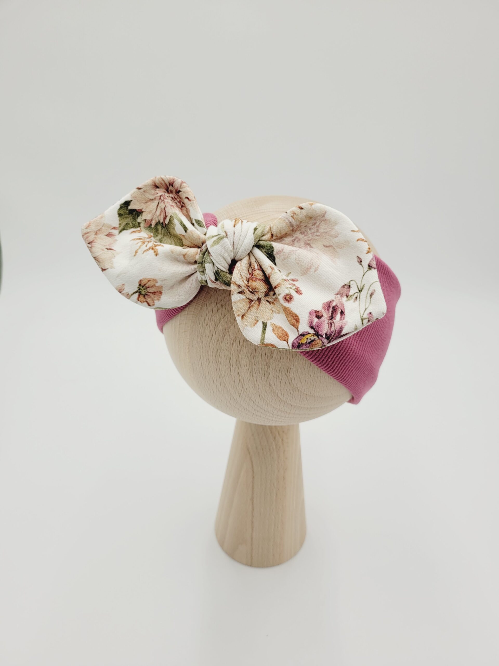 Opaska z kokardą pin-up wzór Dalie uszyta z dzianiny prążkowanej w wybranym kolorze.