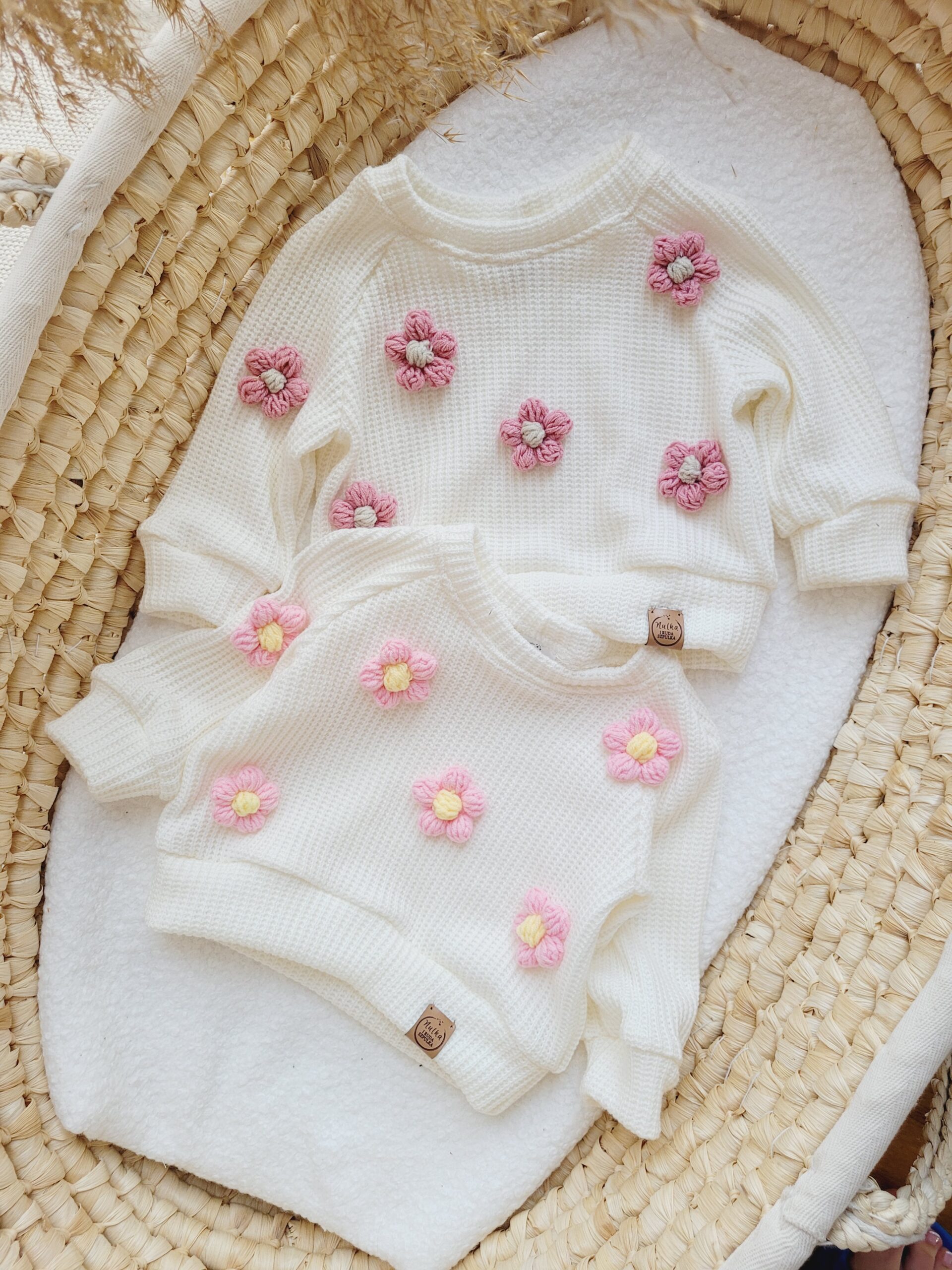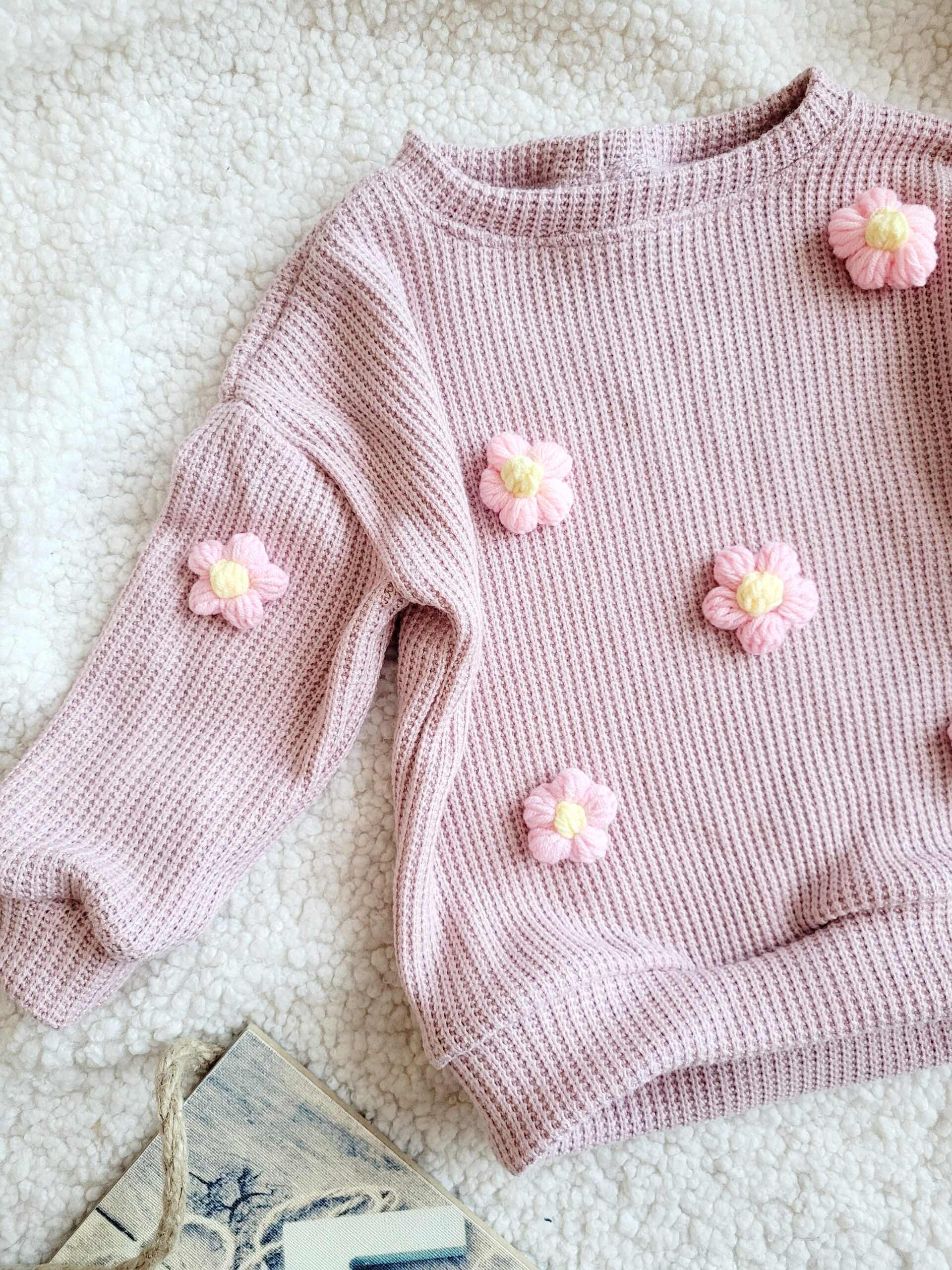 Sweterek dla Dziewczynki z Kwiatkami – Różne Kolory