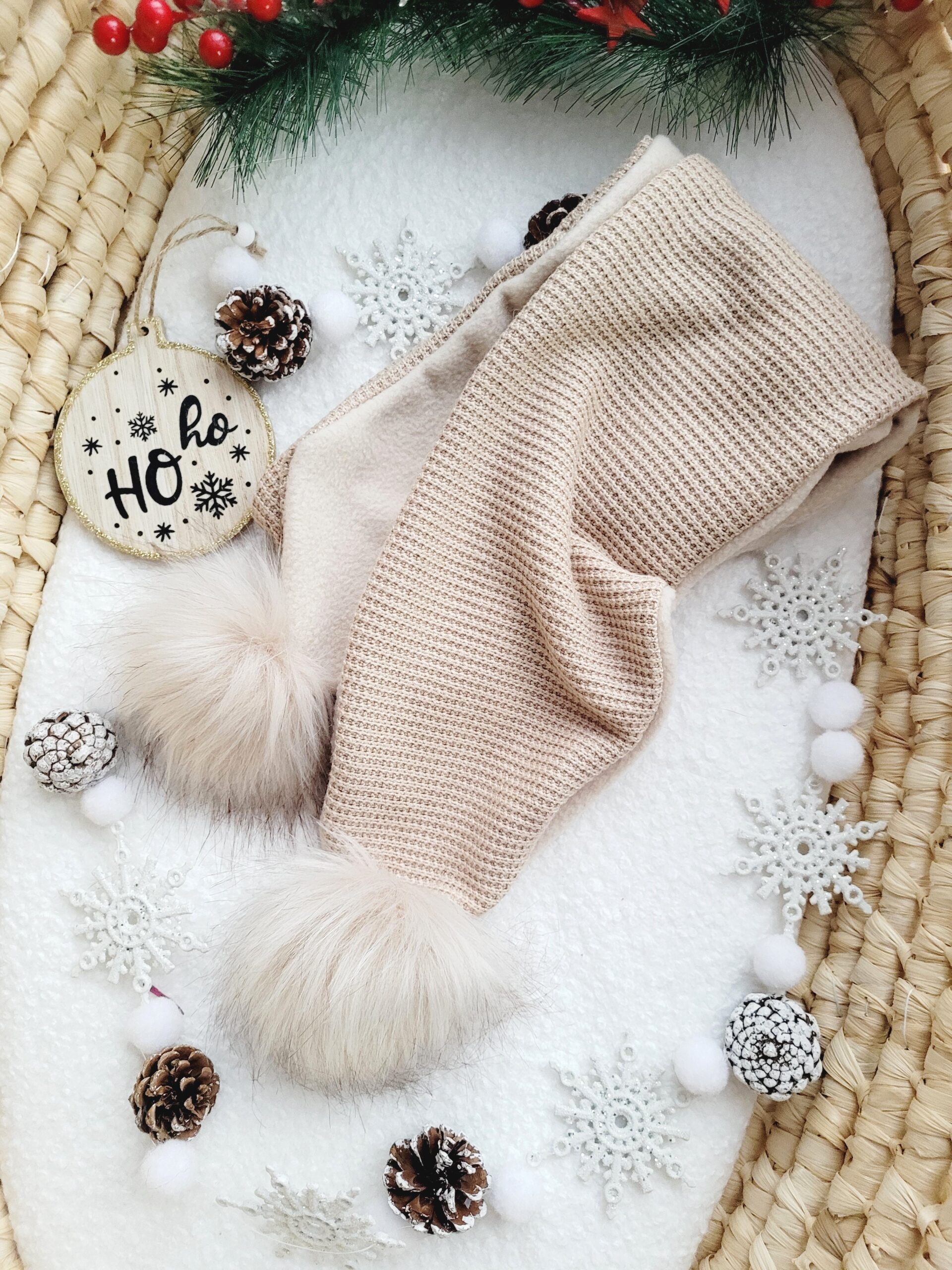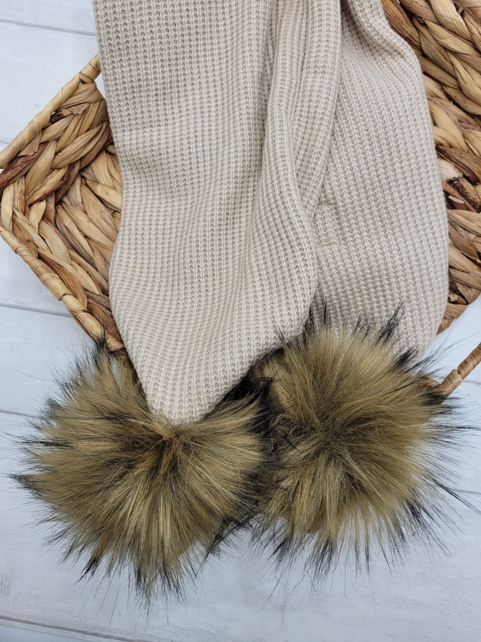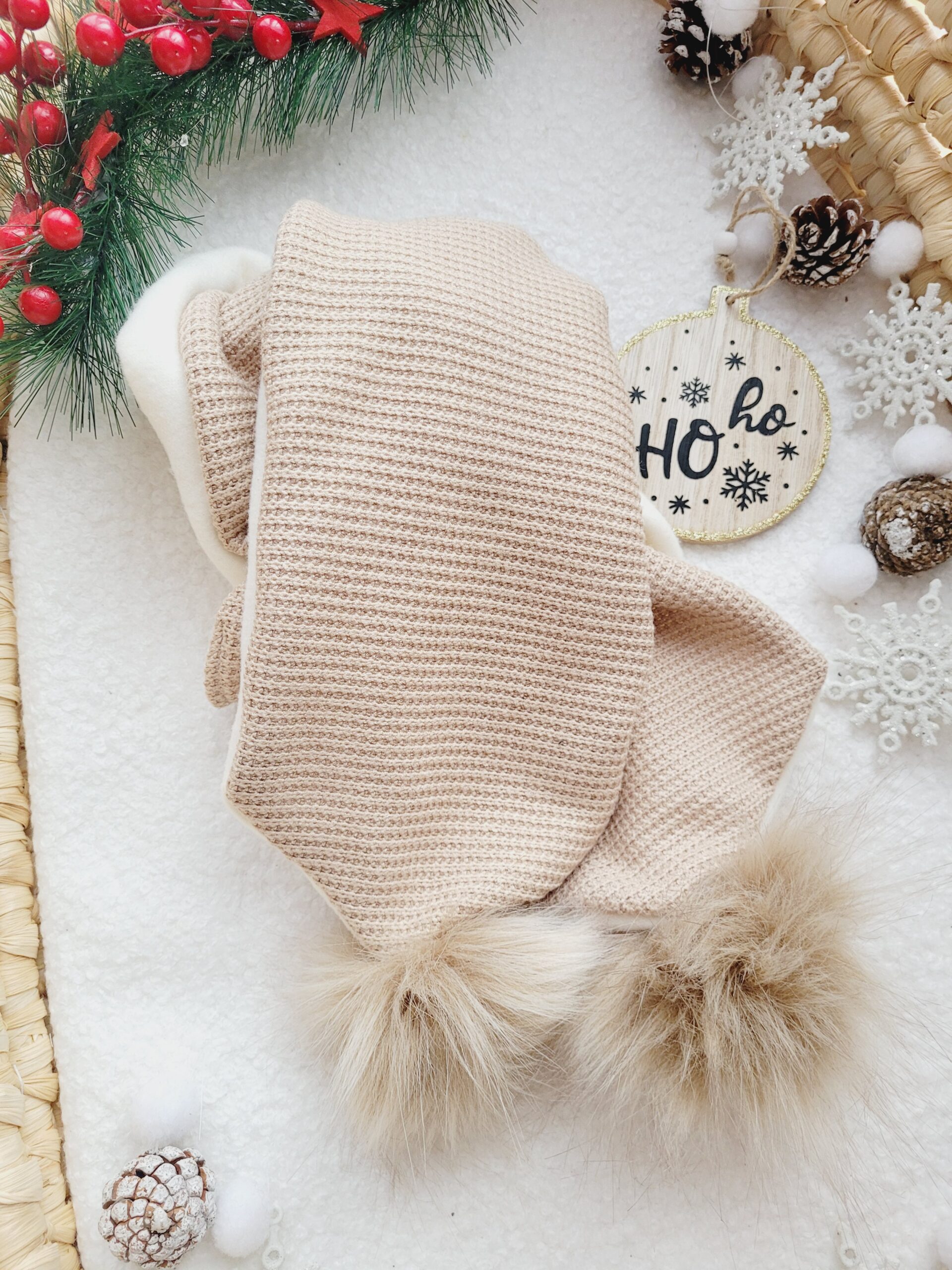 Szalik zimowy z pomponami dla dziecka w dwóch odcieniach beżu do wyboru. Różne długości do wyboru.