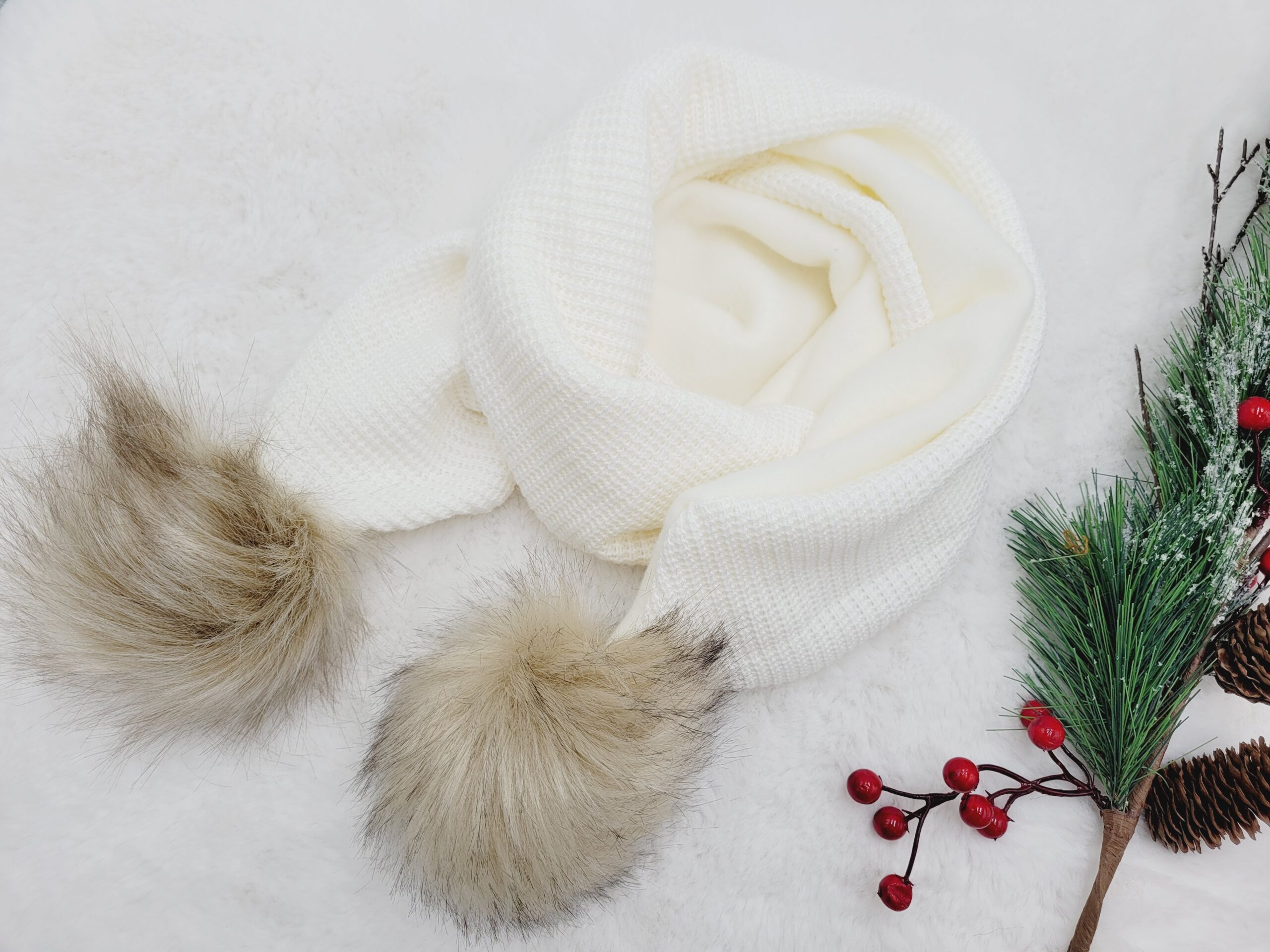 Długość szalika mierzona jest wraz z pomponami (+/- 2 cm).