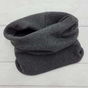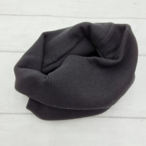 Komin z podwójnej dzianiny prążkowanej w kolorze antracytowym, możliwość podszycia polarem.