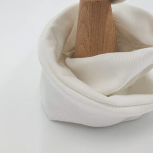 Komin z dzianiny prążkowanej w kolorze ecru.