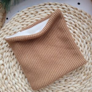 Komin z dzianiny sweterkowej w dwóch odcieniach beżu do wyboru. W całości szyty z dzianiny sweterkowej lub podszyty ciepłym polarem.