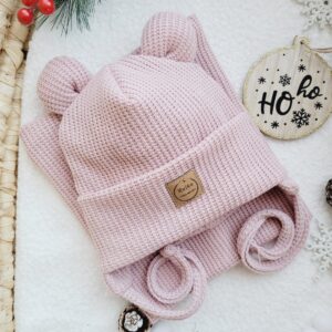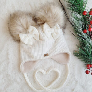 Czapka zimowa dla chłopca lub dziewczynki wykończona misiowymi uszkami dostępna w różnych kolorach.