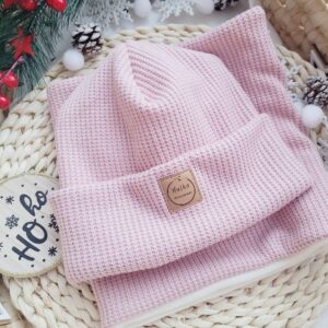 Zimowy komin dla dziewczynki w kolorze pastelowy róż. Możliwość podszycia polarem.