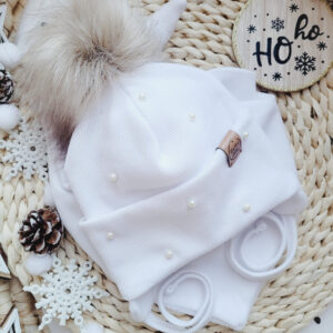 Zimowy komplet dla dziewczynki w wybranym kolorze ozdobiony pomponami i perełkami, rozmiary 36-54. Dużo kolorów do wyboru.