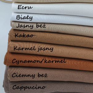 Komplet z dzianiny prążkowanej w wybranym kolorze. Prosta lub wywijana czapka połączona z kominem do wyboru.