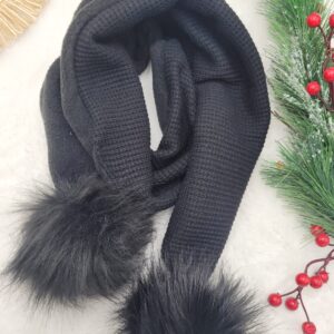 Szalik z dzianiny sweterkowej z pomponami w kolorze czarnym, różne rozmiary do wyboru, możliwość podszycia polarem.